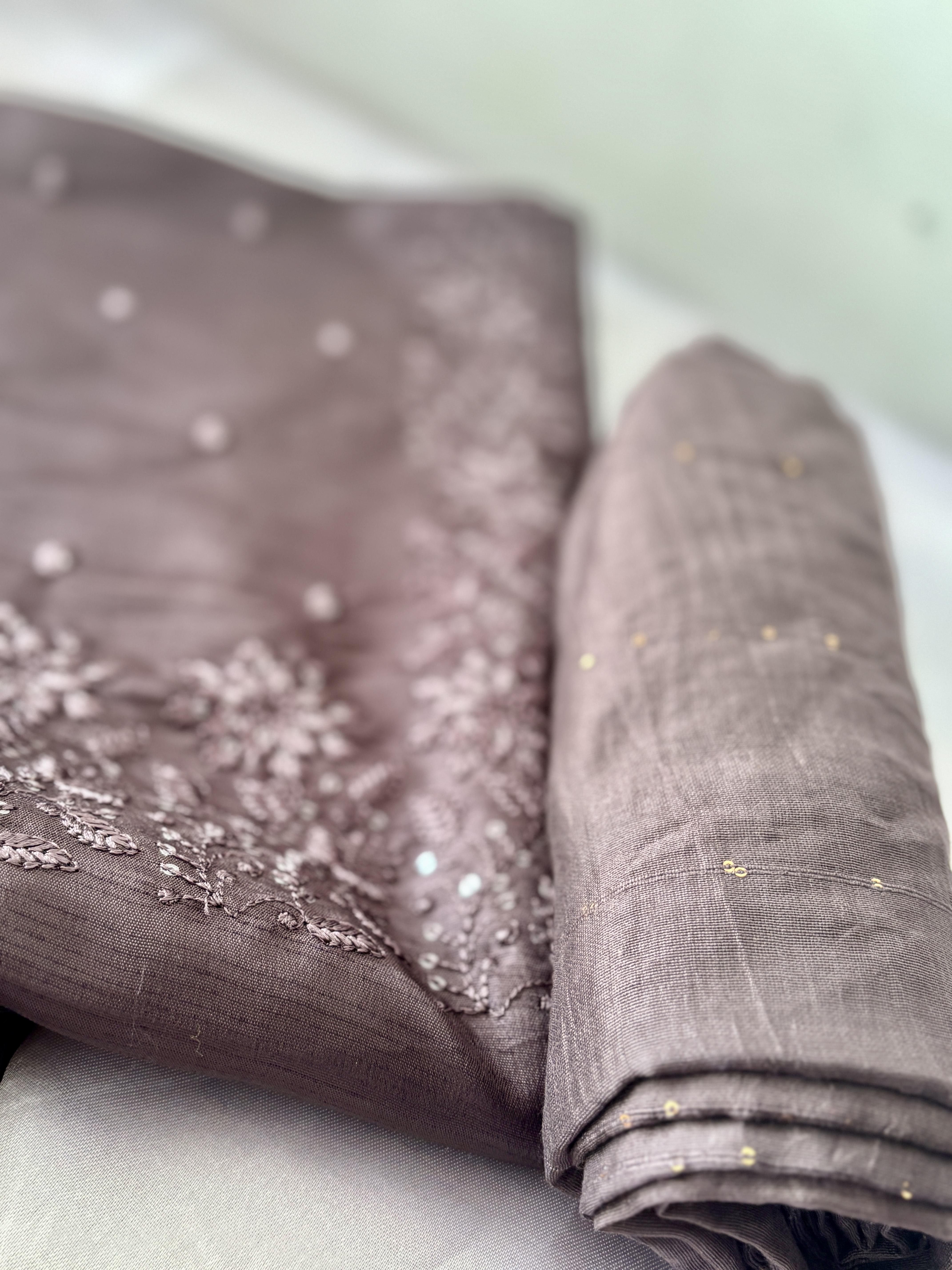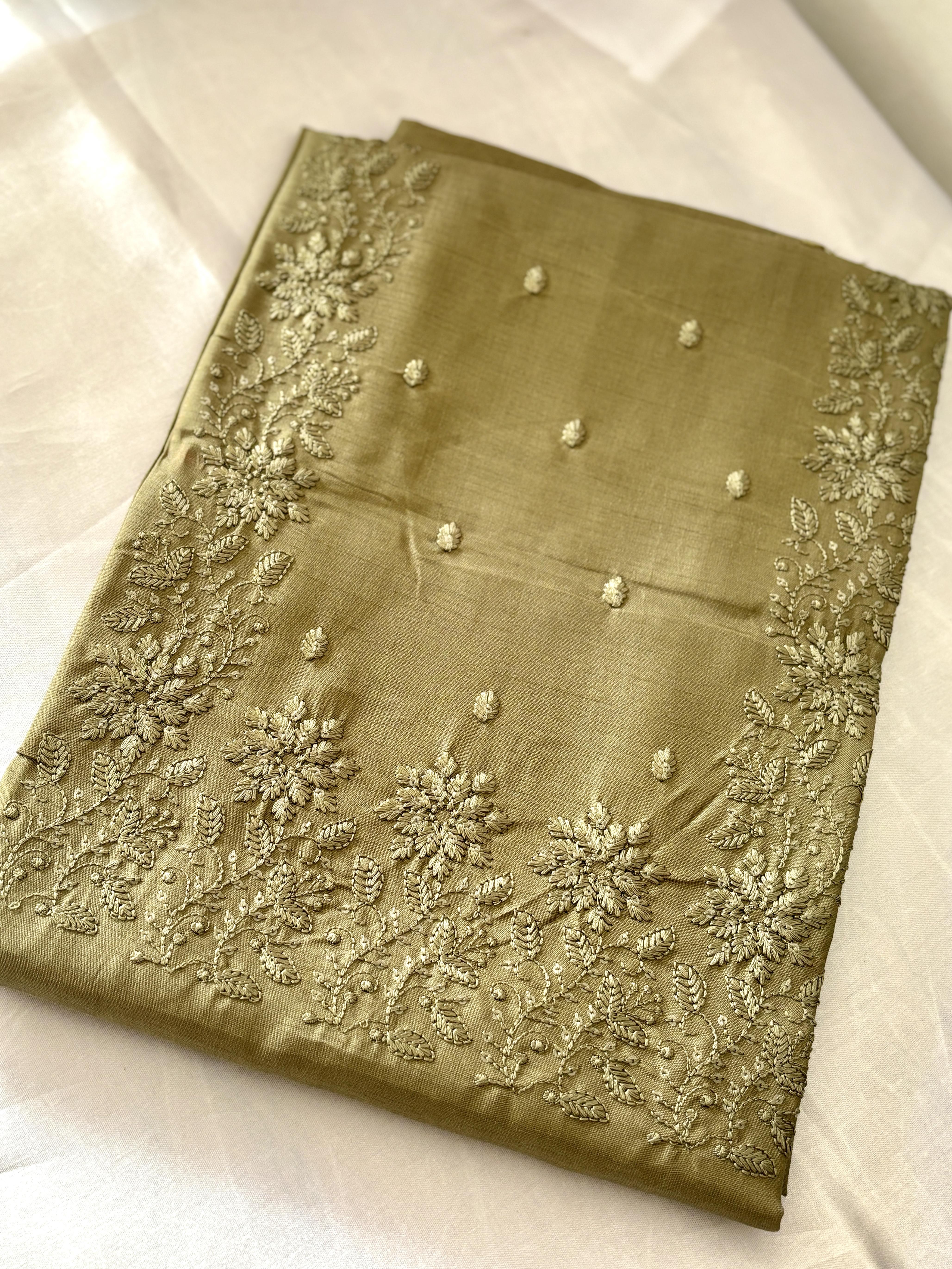 Thread embroidery with minute sequence in yolk portion